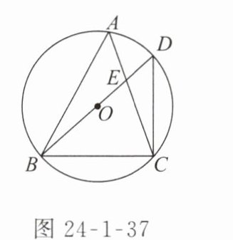 12. 如图 24-1-37,$\triangle ABC$内接于⊙O,$∠A = 50°$,$∠ABC = 60°$,BD 是⊙O 的直径,BD 交 AC 于点 E,连接 DC,则$∠ABE = $
