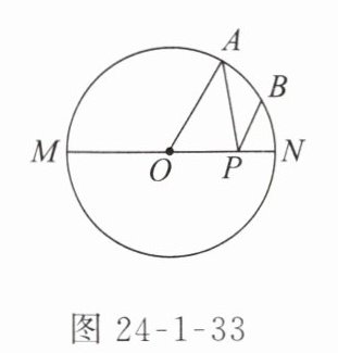 6. 如图 24-1-33,点 A 是半圆上一个三等分点,点 B 是$\overset{\frown}{AN}$的中点,点 P 是直径 MN 上一动点,⊙O 的半径为 1,则$AP + BP$的最小值为(