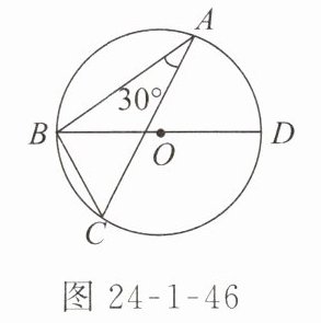 6. 如图 24 - 1 - 46,$BD是\odot O$的直径,圆周角$\angle A = 30^{\circ}$,则$\angle CBD$的度数是(