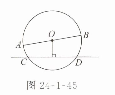 5. 如图 24 - 1 - 45,$AB是\odot O$的直径,$AB = 10\ cm$。若弦$CD = 8\ cm$,则点$A$,$B到直线CD$的距离之和为(