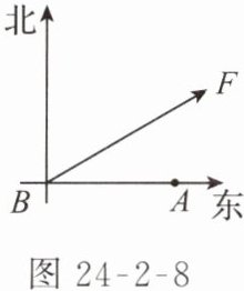 16. 如图 24 - 2 - 8,$A城气象台测得台风中心在A$城正西方向 300 km 的$B$处,并以每小时$10\sqrt{7}$ km 的速度向北偏东$60^{\circ}的BF$方向移动。距台风中心 200 km 的范围是受台风影响的区域。