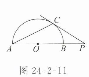 2. 如图 24 - 2 - 11,AB 是半⊙O 的直径,点 P 是 AB 延长线上一点,PC 切半⊙O 于点 C。若∠P = 32°,则∠A 等于(
