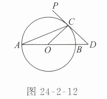 3. 如图 24 - 2 - 12,AB 为⊙O 的直径,PD 切⊙O 于点 C,交 AB 的延长线于点 D,且 CO = CD,连接 AC,则∠ACP 等于(
