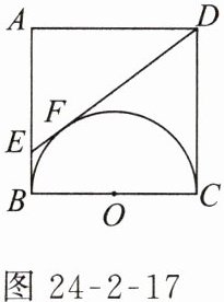 10. 如图 24 - 2 - 17,以正方形 ABCD 的 BC 边为直径作半圆 O,过点 D 作直线切半圆 O 于点 F,交 AB 于点 E,则△ADE 和直角梯形 EBCD 的周长之比为(
