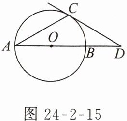 7. 如图 24 - 2 - 15,AB 是⊙O 的直径,点 D 在 AB 的延长线上,BD = OB,CD 与⊙O 相切于点 C,那么∠CAB =