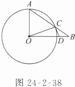 10. 如图$24 - 2 - 38$,在$Rt\triangle AOB$中,$\angle AOB = 90^{\circ}$,以点$O$为圆心,$OA长为半径的圆交AB于点C$,点$D在边OB$上,且$CD = BD$.