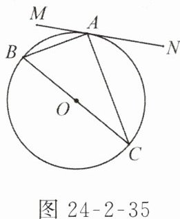 7. 如图$24 - 2 - 35$,已知$\triangle ABC内接于\odot O$,$BC是\odot O$的直径,$MN与\odot O$相切,切点为$A$.若$\angle MAB = 30^{\circ}$,则$\angle B = $
