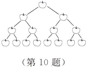 10. 如图所示的是一幅“苹果图”,第一行有 $ 1 $ 个苹果,第二行有$ 2 $ 个,第三行有 $ 4 $ 个,第四行有 $ 8 $ 个······你能否发现苹果的排列规律?猜猜看,第十行有