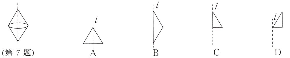 7. 如图所示的是将三角形绕直线$l$旋转一周得到的立体图形,则旋转的三角形是下列选项中的(