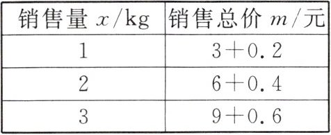 6. 某商店购进了一批小包装食品,在出售时需在进价的基础上加上一定的利润,其销售量 $ x(kg) $ 与销售总价 $ m(元) $ 如下表: