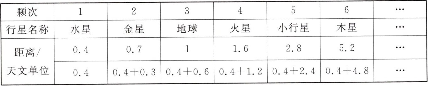 2. 1766 年德国人提丢斯发现,太阳系中的行星到太阳的距离遵循一定的规律,如下表所示: