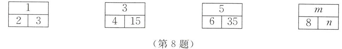 8. 如图,填在各格子中的三个数之间具有相同的规律,根据此规律,$n$ 的值是(