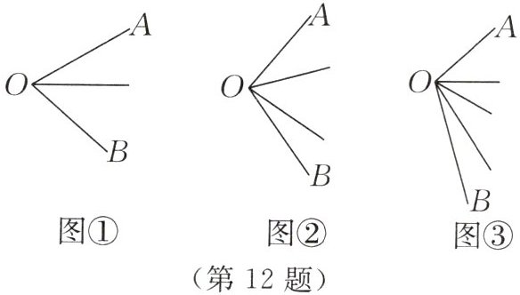 12. 【综合与实践】(1)如图①,在$\angle AOB$内引一条射线,共有