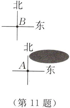 11. 【数学应用】如图,$A$,$B$,$C$三点表示三个城市,地图被损坏了一部分,$C$的具体位置看不清楚了,但知道$C在A的北偏东60^{\circ}$方向上,在$B的南偏东45^{\circ}$方向上,请你确定$C$的位置。