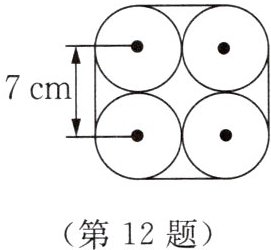 解:由题图可知,圆的直径为7 cm。根据题意,得$7×4 + 7\pi=28 + 7\pi(cm)$,即捆一圈至少用绳子$(28 + 7\pi)cm$。