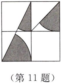 11. 如图,方格纸中4个小正方形的边长均为1,则图中阴影部分的三个小扇形的面积和为
