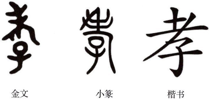 (1)从“孝”字的字形演变中,推测“孝”的字义。