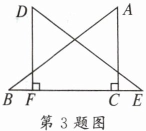 3. 如图,AC⊥BE于点C,DF⊥BC于点F,且BC= EF,如果添上一个条件后,仍不能证明Rt△ABC≌Rt△DEF,这个条件是(