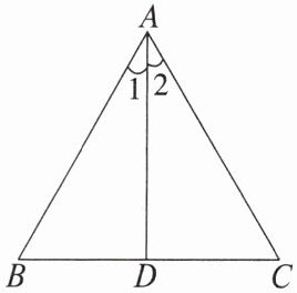 解析:$\because AB = AC$,$D$ 是 $BC$ 的中点,$\therefore \angle 1= \angle 2= 30^{\circ}$。