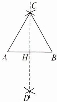 5. 如图,小明在学了尺规作图后,作了一个图形,其作图步骤是:① 作线段 $AB = 2$,分别以点 $A$、$B$ 为圆心,以 $AB$ 长为半径画弧,两弧相交于点 $C$、$D$;② 连结 $AC$、$BC$,作直线 $CD$,且 $CD$ 与 $AB$ 相交于点 $H$。则下列说法不正确的是 (