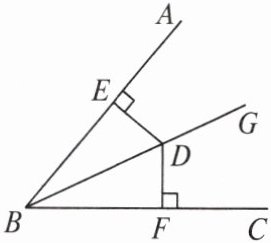 解析:$\because BG是\angle ABC$的平分线,$DE\perp AB$,$DF\perp BC$,