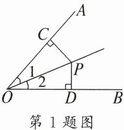 1. 如图,$OP平分\angle AOB$,$PC\perp OA$,$PD\perp OB$,垂足分别是$C$、$D$,下列结论中错误的是(