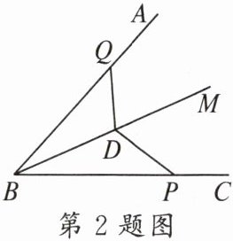 2. 如图,$BM是\angle ABC$的平分线,点$Q$、$D分别在BA$、$BM$上,点$P为直线BC$上的一个动点.如果$BQ = 6$,$\triangle BDQ的面积为9$,那么线段$DP$的长不可能是(