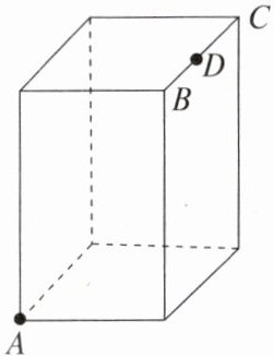1. 如图,棱柱的底面是边长为4的正方形,侧面都是长为8的长方形,点D是BC的中点,在棱柱下底面的A点处有一只蚂蚁,它想吃到上底面点D处的食物,需要爬行的最短路程是s,则$s^2$的值为(
