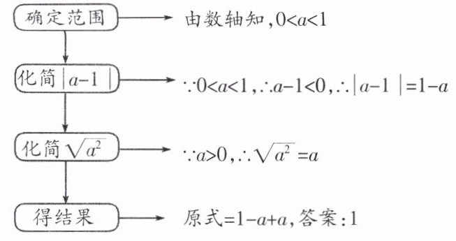 【示范题2】已知实数$a$在数轴上的位置如图所示,则化简$|a - 1| + \sqrt{a^2}$的结果是______.