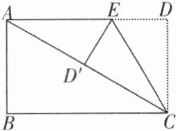 【示范题1】如图,将长方形纸片 $ ABCD $ 折叠,使边 $ DC $ 落在对角线 $ AC $ 上,折痕为 $ CE $,且 $ D $ 点落在 $ D' $ 处,若 $ AB = 3 $,$ AD = 4 $,则 $ ED $ 的长为(