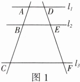 2. 应用:∵ 如图 $ l_1 // l_2 // l_3 $.
