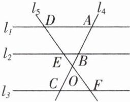 【思路点拨】$ DE $,$ EF $ 是 $ l_5 $ 被三条平行线所截分别夹在 $ l_1 $ 与 $ l_2 $,$ l_2 $ 与 $ l_3 $ 间的两条线段,$ AC $ 是 $ l_4 $ 被三条平行线所截夹在 $ l_1 $ 与 $ l_3 $ 间的一条线段,而 $ AB $ 是线段 $ AC $ 上的一部分,写比例式时要找准线段的对应位置.