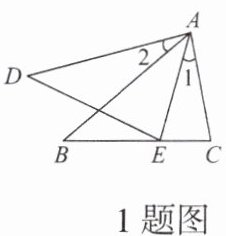 1. 如图,已知∠1 = ∠2,那么添加下列一个条件后,仍无法判定△ABC ∽ △ADE 的是 (