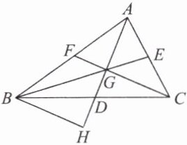 4. 如图,在△ABC 中,点 G 是重心,三条中线 AD = 9,CF = 12,BE = 15,延长 AD 至 H,使 DG = DH,求△ABH 的面积。