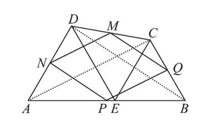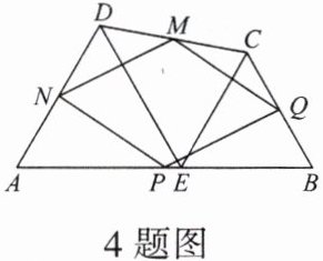 4. 如图,在四边形 ABCD 中,E 为 AB 上一点,△ADE 和△BCE 都是等边三角形,AB,BC,CD,DA 的中点分别为 P,Q,M,N,试判断四边形 PQMN 为怎样的四边形,并证明你的结论。