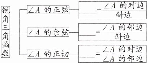 1. 在直角三角形中,一个锐角的正弦就是它的对边与斜边的比。 (