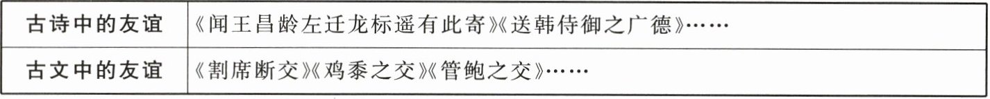 | 古文中的友谊 | 《割席断交》《鸡黍之交》《管鲍之交》…… |