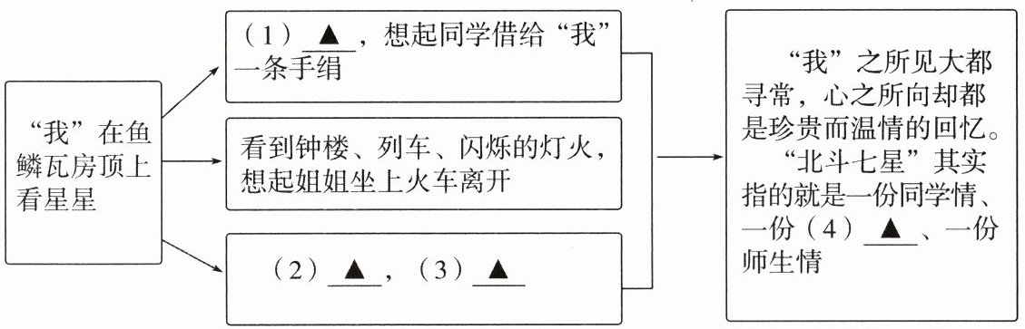 “我”之所见大都寻常,心之所向却都是珍贵而温情的回忆。“北斗七星”其实指的就是一份同学情、一份(4)▲、一份师生情