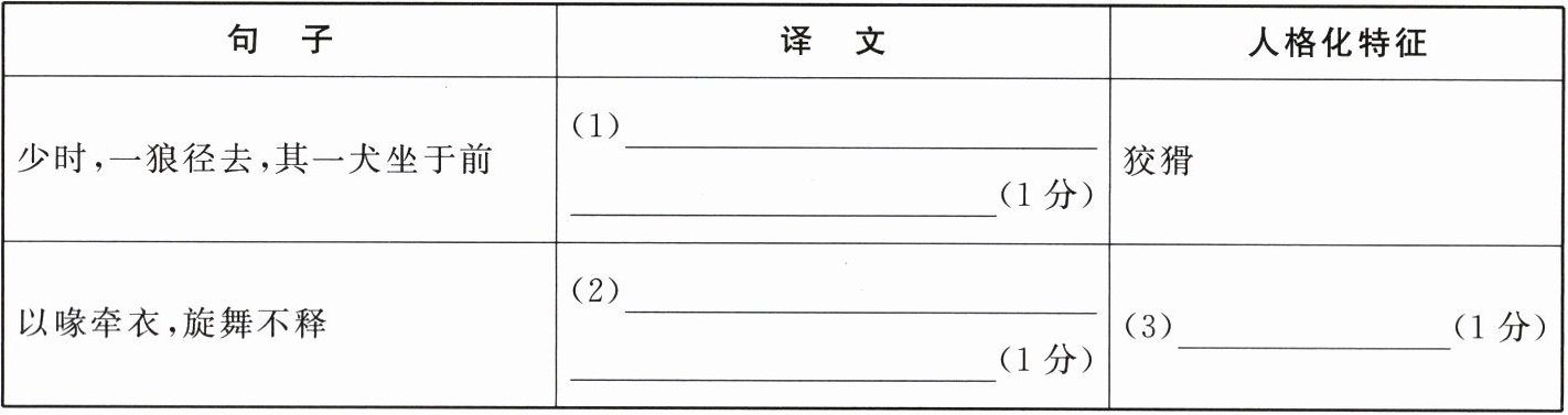 |少时,一狼径去,其一犬坐于前|(1)______(1分)|狡猾|