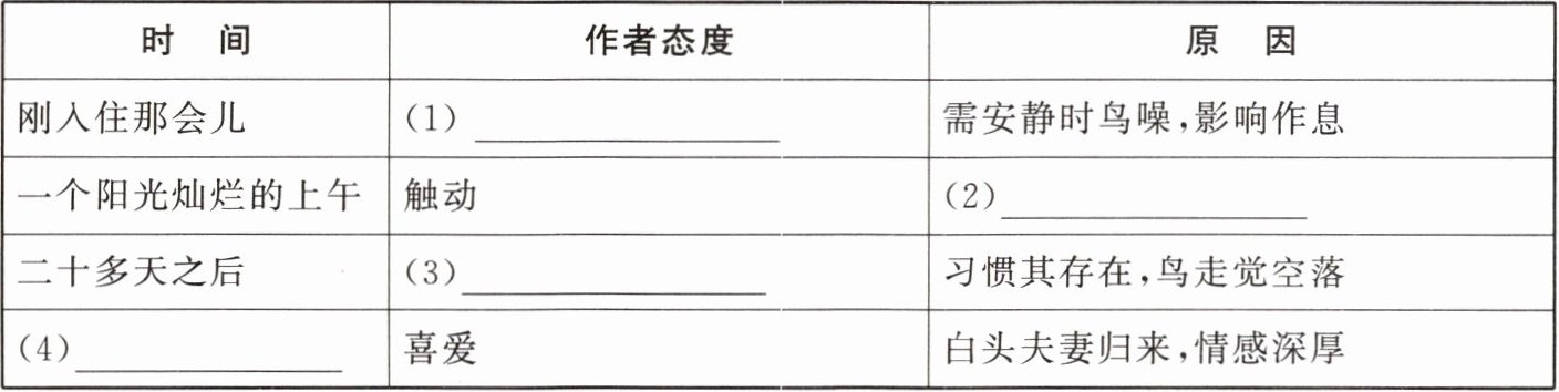 (3)对宁静、质朴生活的向往。在繁忙的都市生活中,鸟儿带来的这份自然温馨让作者沉醉,与鸟儿相伴的日子成为生活中美好的部分,越发显得珍贵,所以作者珍惜这种生活状态。