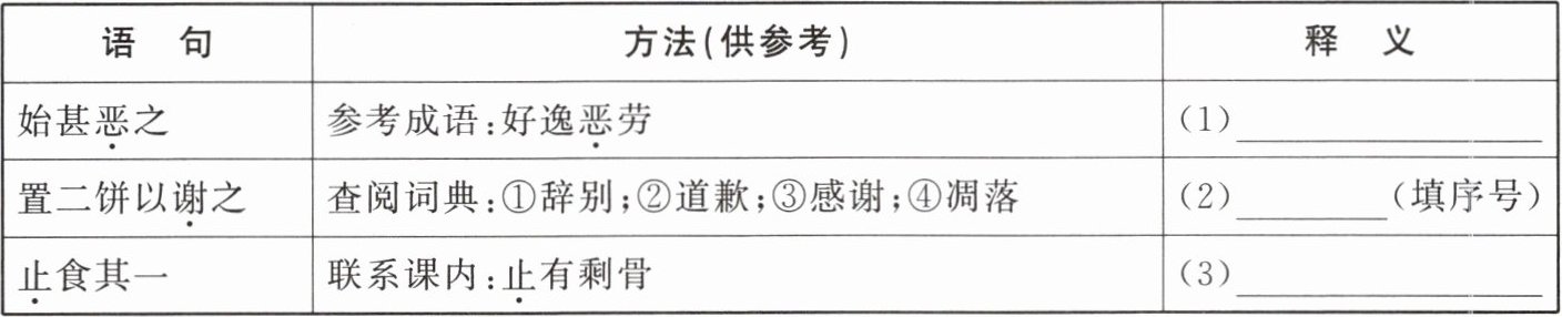 (填序号) || 止食其一 | 联系课内:止有剩骨 | (3)