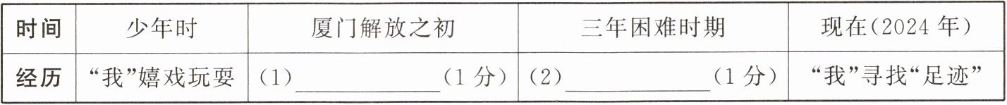 |时间|少年时|厦门解放之初|三年困难时期|现在(2024年)|
