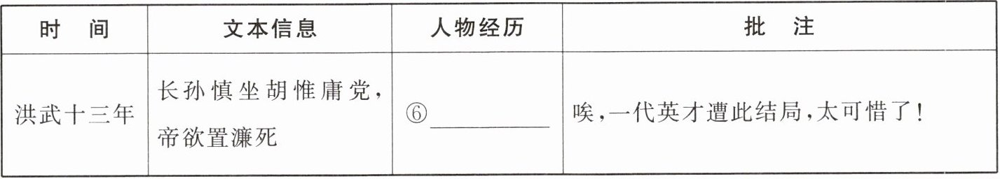 |洪武十三年|长孙慎坐胡惟庸党,帝欲置濂死|⑥______|唉,一代英才遭此结局,太可惜了!|