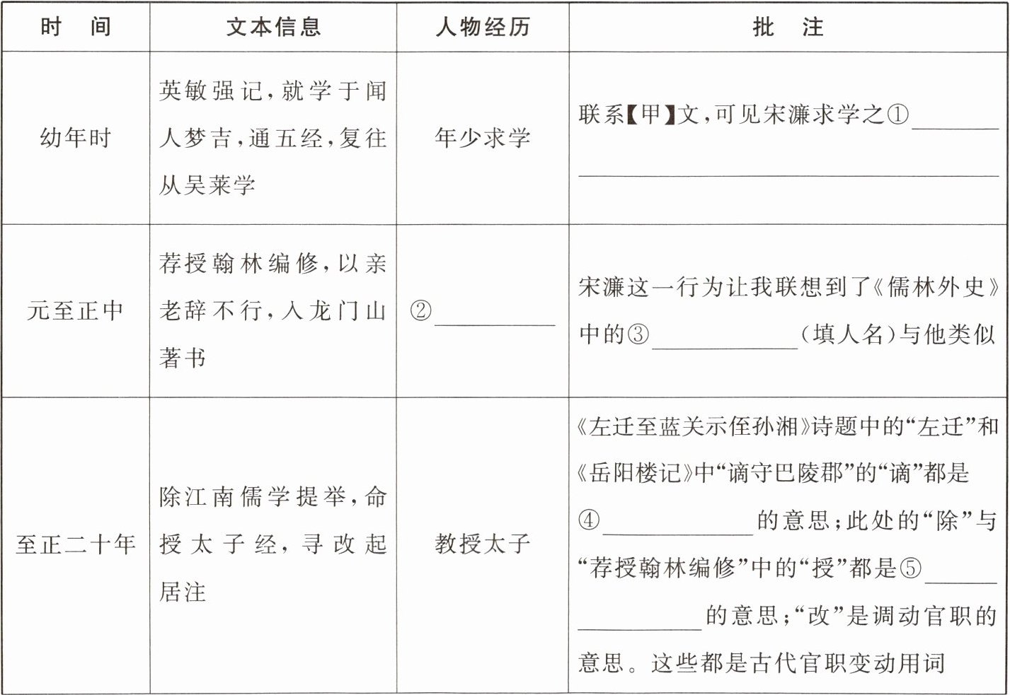 |元至正中|荐授翰林编修,以亲老辞不行,入龙门山著书|②______|宋濂这一行为让我联想到了《儒林外史》中的③______(填人名)与他类似|