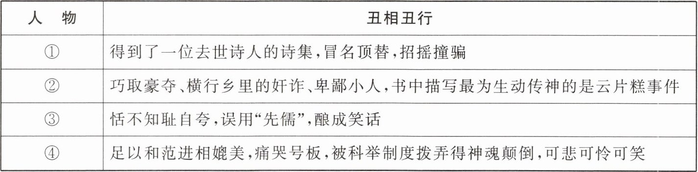 5.《儒林外史》为我们刻画了一幅儒林群丑图,儒林众生丑相毕现。下列填入表格序号处的人名正确的一项是( )(3分)