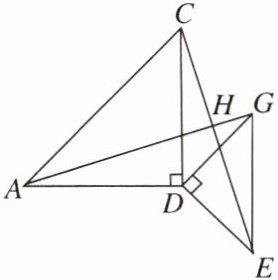 13. 如图,在△ADC和△EDG中,AD= CD,DG= DE,∠ADC= ∠GDE= 90°,连结AG,CE,相交于点H。
