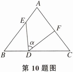 10. 如图,在△ABC中,∠B= ∠C,BD= CF,BE= CD,∠EDF= α,则下列结论正确的是(