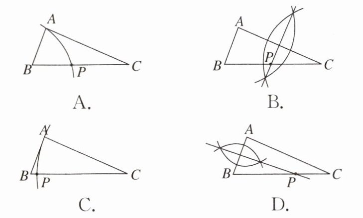 10. 如图,已知△ABC(AC<BC),用尺规在 BC 上确定一点 P,使 PA+PC= BC,则符合要求的作图痕迹是(