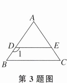 3. 如图,已知DE//BC,AB=AC,∠1=125°,则∠A的度数是 (