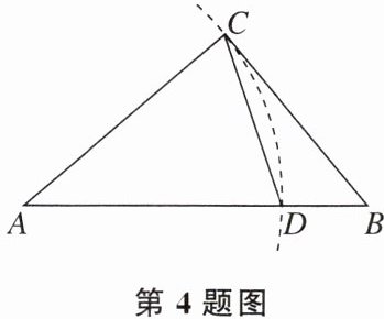 4. 如图,已知在Rt△ABC中,∠ACB=90°,以A为圆心,AC长为半径作弧,交AB于点D。若∠A=40°,则∠DCB的度数为 (